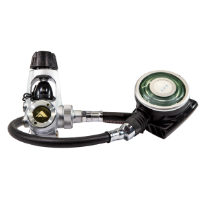 The Airstream Evoque Regulator combines the Airstream First stage with the Evoque Second stage to make one of the highest performing regulators on the market today. The Airstream Overbalanced and Environmentally sealed first stage is made through a forging process allowing optimized hose routing. The low pressure ports are angled 30 degrees down and 23 degrees out to allow hose routing directly over the shoulders. The high pressure ports are angled down 45 degrees to keep gauges closer to the divers hip and body. This process also allows air flow to be channeled through larger passages combined with the overbalanced diaphragm creates the lowest Work Of Breathing effort (WOB) 0.80 Joules per liter in all conditions and temperatures. Built into the front of the body of the Airstream is a forged heat transfer keeping warmer air inside and forcing cold out allowing this regulator to perform in the coldest conditions where others fail. The Evoque Balanced Adjustable Second stage is compact and designed to give superior quality of breathing to any diver. The balanced diaphragm is securely held down by a ring and inner cover that screws down below the front cover and purge button. The exhaust has a small hinged door allowing easy access to the diaphragm to clear any debris. This exhaust used with our Tattoo Mask or similar will allow all the exhaust gas and bubble to pass its side and not in front of the mask. The adjustment knob has a clutch system when turning clockwise to avoid over torqueing. Next to the adjustment knob is a large pre dive and dive venturi switch easily adjusted with or without any size glove. The inner valve is made of stainless steel parts providing excellent breathing in any environment or temperature. Octopus available with a high visibility yellow colored cover.