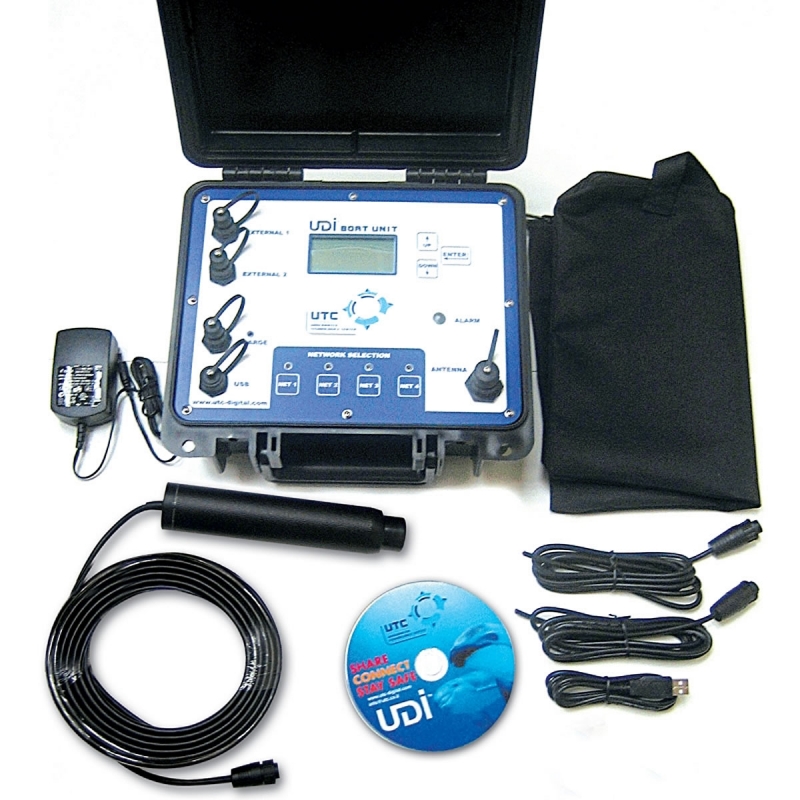 The boat unit is an optional component of the UDI system. It is used for text message communication with the underwater divers, and its Homing capabilities allow divers to navigate their way back to the boat. The UDI boat unit contains the following functions: